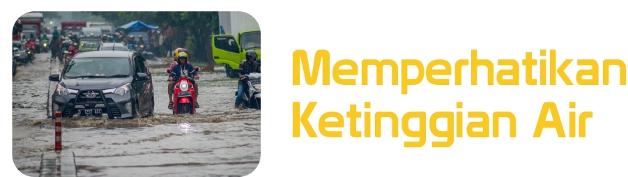 Semakin tinggi genangan air, maka semakin tinggi juga resiko untuk merusak kendaraan. Intinya, banjir yang hendak dilewati tidak mendekati atau bahkan lebih tinggi dari lubang masuk udara kendaraan.